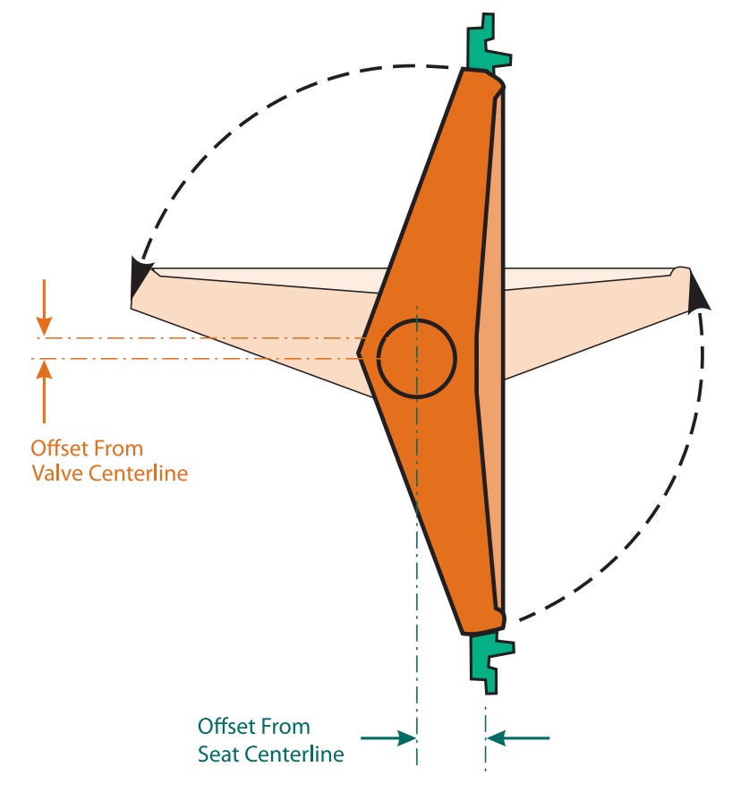 Dans cette configuration, le disque est excentrique ou décalé par rapport au siège de vanne. Lorsque le disque commence à tourner, il s’éloigne du siège au lieu de le traverser. Cette conception utilise en fait la pression de la ligne pour lui donner son étanchéité. Cette fonctionnalité permet l'utilisation de vannes papillon décalées dans des applications haute pression telles que l'éthanol ou le CVC. Il utilise généralement du PTFE ou du plastique comme matériau de siège, mais des sièges métalliques sont également disponibles pour répondre aux spécifications d'essais incendie telles que l'API 607.
