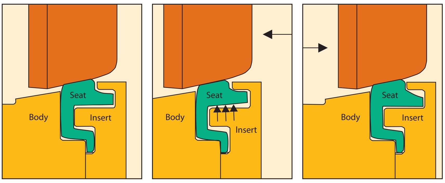 Les vannes papillon standard à double excentrage sont équipées d'un siège en polymère, généralement en PTFE, avec un support métallique pour la sécurité incendie. Des sièges métal sur métal sont également disponibles et peuvent fournir une qualité d'étanchéité supérieure et permettre des températures légèrement plus élevées.
